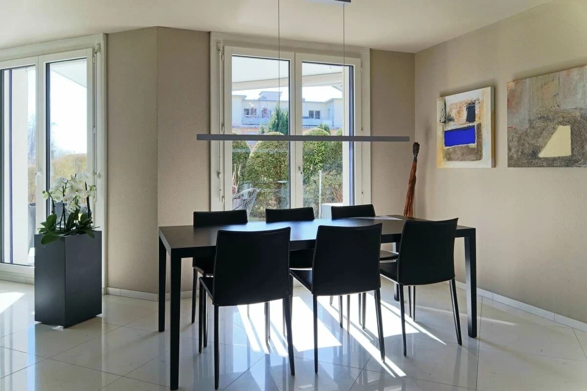 Diese begehrenswerte Liegenschaft überzeugt durch hochwertige Materialien und einen exklusiven und liebevoll gestalteten Garten mit viel Privatsphäre. Die Architektur ist zeitlos modern und verbindet mit dem stilvollen Farbkonzept, Grosszügigkeit mit angenehmem Wohnklima. Diese sehr gepflegte Immobilie wurde im Minergie Standard erbaut und bietet eine kontrollierte Wohnungslüftung, eigene Stromerzeugung durch eine Photovoltaik-Anlage, eine Erdsonden-Heizung und vieles mehr.Das Erdgeschoss bildet das Herzstück des Hauses. Der grosszügige und helle Wohn- und Essbereich öffnet sich über grosse Fensterfronten direkt zum wunderschönen Garten. Die stilvolle, geschwungene Küche ist ein besonderes Highlight. Mit ihren hellen Fronten, der eleganten Edelstahlrückwand und hochwertigen Einbaugeräten verbindet sie Design und Funktionalität auf hohem Niveau. Grosszügige Arbeitsflächen und die durchdachte Anordnung machen sie zum idealen Ort für kulinarische Kocherlebnisse. Der Eingangsbereich mit Garderobe und ein Gäste-WC ergänzen diese Etage.Der Wintergarten mit Granitbodenplatten und Frostschutz- Bodenheizung erweitert den Wohnraum und schafft einen fliessenden Übergang zwischen Innen- und Aussenbereich. Dank Beschattung geniessen Sie hier zu jeder Jahreszeit eine helle, freundliche Atmosphäre mit beruhigender Sicht ins Gartenparadies.Im Obergeschoss befindet sich ein grosses Zimmer mit Parkett, das als Schlafzimmer dient. Ein weiteres Zimmer mit Korkboden und einem 6-türigem Massivholz-Einbauschrank lässt sich als Schlafzimmer, Gästezimmer oder Homeoffice nutzen. Die Räume überzeugen durch angenehme Proportionen und eine helle, freundliche Ausstrahlung. Das moderne Badezimmer mit Eckbadewanne und Sternenhimmel und Dusche ist mit hochwertigen Materialien ausgestattet und verwöhnen mit hohem Komfort. Der Massivholz-Einbauschrank im Korridor bietet zusätzlichen Stauraum.Das Dachgeschoss erweitert das Raumangebot mit zwei Zimmer. Ob als ruhiger Arbeitsbereich, Teenagerzimmer oder Hobbyraum - diese Etage bietet zusätzliche Rückzugsmöglichkeiten mit viel Privatsphäre. Beide Zimmer verfügen einen Zugang zu einem Balkon und bieten je ein Dachfenster mit Beschattung. Eine Nasszelle mit Duche/WC sorgt für zusätzlichen Komfort und unterstreicht die familienfreundliche Konzeption des Hauses.Im Untergeschoss befindet sich ein vielseitig nutzbarer und beheizter Bastelraum mit Einbauschrank. Ein Wasch- und Technikraum mit einem Waschturm von V-Zug, Lavabo, Wasserenthärtungsanlage und Boiler bieten einen praktischen Mehrwert im Alltag. Diese Ebene verschafft viel Stauraum und flexible Nutzungsmöglichkeiten - ideal für Hobbys, Fitness oder zusätzliche Lagerflächen. Private Oase im Grünen.Der liebevoll angelegte Garten ist ein wahres Refugium für Naturliebhaber. Dank der auserlesenen Bepflanzung mit heimischen und seltenen Bäumen, Sträuchern und Blumen, blüht fast das ganze Jahr über eine abwechslungsreiche Flora, die zu jeder Jahreszeit begeistert. Zarte Frühjahrsblumen, sommerliche Stauden, aromatische Kräuter, herbstliche Farbenpracht und immergrüne Akzente im Winter erfreuen Herz und Sinne gleichermaßen.Die leichte Hanglage des Grundstücks wurde harmonisch nivelliert. Granitstufen führen sanft hinunter zu einem stilvoll angelegten Kiesbereich mit einem ausgewählten Wasserbrunnen aus Granit. Hier findet Ihre Lounge grosszügig Platz und schafft eine Atmosphäre von Ruhe, Entspannung und Geborgenheit. Ob entspannte Stunden auf den verschiedenen Gartensitzplätzen oder Aktivitäten im Grünen - dieser Garten lädt dazu ein, laue Sommerabende in vollen Zügen zu geniessen und gesellige Stunden mit Familie und Freunden in besonderem Ambiente zu verbringen.Diese Liegenschaft eignet sich ideal für Familien oder Paare mit Platzbedarf, die ein gepflegtes Zuhause an ruhiger Lage suchen und gleichzeitig Wert auf Qualität, Grosszügigkeit und eine harmonische Umgebung legen.2 Parkplätze in der Einstellhalle sind im Kaufpreis inbegriffen.Erleben Sie den Charme dieser einzigartigen Immobilie bei einer persönlichen Besichtigung. Wir freuen uns auf Ihre Kontaktaufnahme!Besuchen Sie uns für weitere Informationen auf unserer Website unter www.raschle-immobilien.ch oder rufen Sie uns unter +41 44 888 77 70 an.
