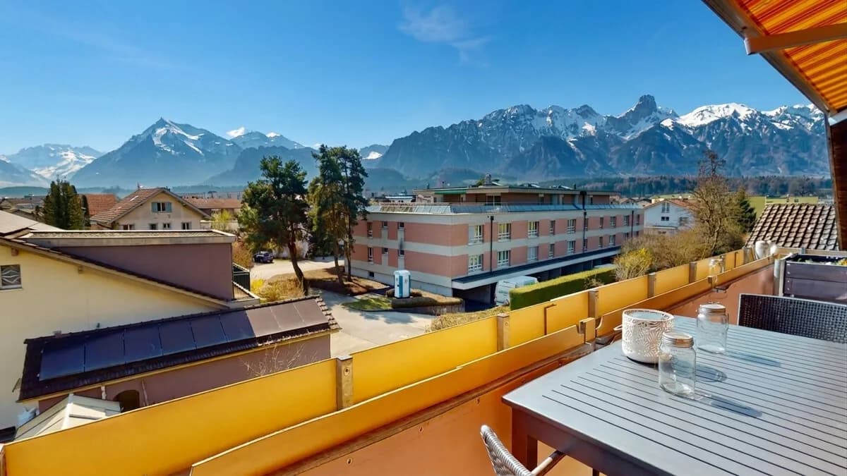Suchen Sie eine grosszügige Dachwohnung mit atemberaubender Aussicht auf die Berner Alpen? Dann ist dies unser Angebot in 3604 Thun: Diese grosszügige 6.5-Zimmer-Dachwohnung am Tiefgraben 5 in Thun wurde 1994 erbaut und bietet eine Nettowohnfläche von 140 m2 verteilt auf zwei Ebenen mit einzigartigem Wohncharakter. Die Wohnung besticht durch ihre drei Balkone in verschiedenen Himmelsrichtungen und bietet damit zu jeder Tages- und Jahreszeit einen Platz an der Sonne. Vom verglasten Westbalkon, direkt von der Küche zugänglich, geniesst man nicht nur die Abendsonne hier befinden sich zudem zwei grosse, isolierte Réduits mit viel Stauraum. Auch beim Ostbalkon, der von zwei Zimmern aus zugänglich ist, steht ein weiteres grosses Réduit zur Verfügung. Die Aussicht ist schlicht atemberaubend: Eiger, Mönch, Jungfrau, Niesen und Stockhorn präsentieren sich je nach Tageszeit in einem anderen Licht ein Anblick, den man nie satt wird. Die Lage überzeugt auf ganzer Linie: Die Schulen Neufeld und OS Strättligen sowie die Einkaufszentren Zentrum Oberland und Panorama sind innert weniger Minuten erreichbar. Mit dem öffentlichen Verkehr ist man alle 5 Minuten in der Stadt Thun, und die Autobahnauffahrt Thun-Süd ist innert 3 Minuten erreichbar. Das Herzstück der Wohnung ist das helle, offene Wohnzimmer mit dem charakteristischen Schwedenofen und der einladenden Holztreppe, die zur Galerie im Obergeschoss führt. Die Küche überzeugt mit hochwertiger Ausstattung Steamer, Backofen, grossem Kühlschrank, praktischem Apothekerauszug und einer eleganten Granitabdeckung. Von der Küche aus gelangt man direkt auf den verglasten Westbalkon. Die drei Schlafzimmer sind hell und gemütlich dank Dachfenster, sichtbaren Holzbalken und warmem Parkettboden strahlen sie eine angenehme Wärme aus. Zwei Schlafzimmer haben direkten Zugang zum Ostbalkon. In der Galerie befinden sich zwei weitere, lichtdurchflutete Zimmer mit Dachfenstern und sichtbaren Holzbalken ideal als Homeoffice, Hobbyraum oder zusätzliche Schlafzimmer. Das renovierte Bad/WC im Hauptgeschoss sowie eine separate Dusche/WC in der Galerie runden das Raumangebot ab. Praktisch und komfortabel: Der Waschturm befindet sich direkt in der Wohnung. Im Kaufpreis inbegriffen ist ein Carport sowie ein grosser Kellerraum. Highlights: - Traumhafte Aussicht auf Eiger, Mönch, Jungfrau, Niesen und Stockhorn - Drei Balkone in Ost-, Süd- und Westausrichtung - Grosszügige 6.5-Zimmer-Dachwohnung mit Galerie und 140 m2 Wohnfläche - Offenes Wohnzimmer mit Schwedenofen - Küche mit Steamer, Granitabdeckung und Apothekerauszug - Sichtbare Holzbalken und Dachfenster einzigartiger Wohncharakter - Renoviertes Bad/WC im Hauptgeschoss - Separate Dusche/WC in der Galerie - Waschturm in der Wohnung - Drei Réduits mit viel Stauraum - 1x Carport und Kellerraum im Preis inbegriffen - Schulen, Einkauf und ÖV in wenigen Minuten erreichbar - Autobahnauffahrt Thun-Süd innert 3 Minuten
