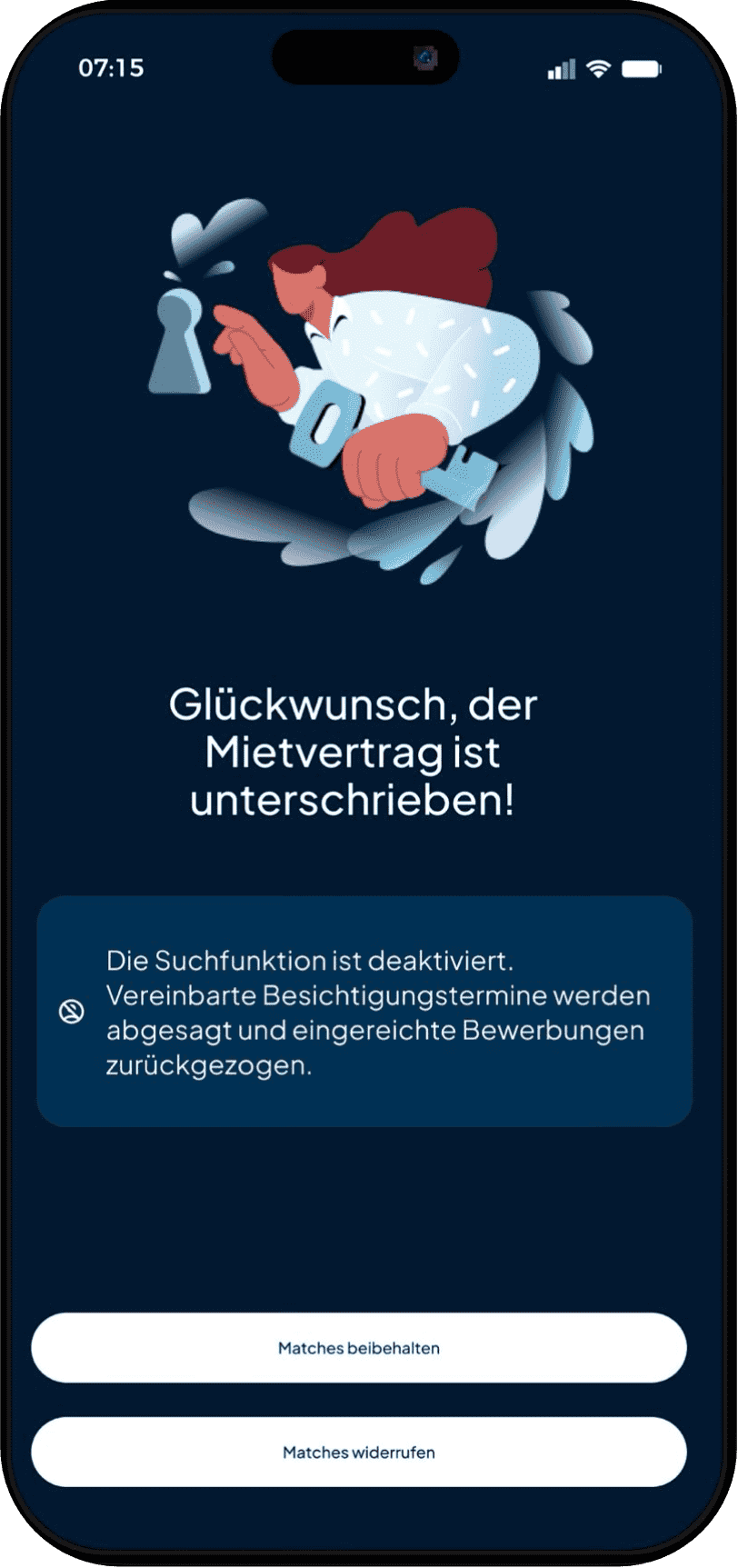 Ein Match mit einem Off-Market-Angebot garantiert dir eine persönliche Wohnungsbesichtigung mit limitierter Teilnehmerzahl.
